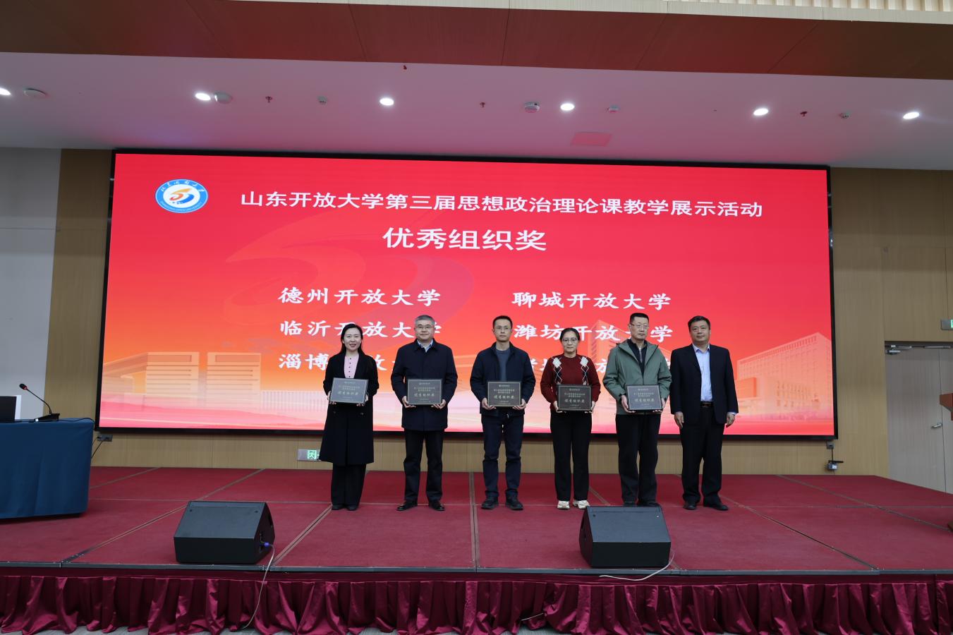 本次活动举行了山东开放大学第三届思想政治理论课教学展示活动颁奖仪式和思政课教学名师授予仪式,表彰了一批在教学工作中表现突出的优秀教师。山东开放大学马克思主义学院教研室主任黄玉红系统总结了一年来思政课教学工作成效,并对下一阶段思政课教学任务进行了布置。